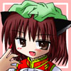 人物:尻尾が2本もある化け猫の妖怪。普段は妖怪の山に住んでいる。また、八雲藍の式神でもある為、妖怪(八雲紫)の式の式と呼ばれている。化け猫に鬼神を憑かせたものであるが、式神の藍が打った式神であるため能力はやや低く、その式は水に濡れると外れるというものであり、また猫としても水が苦手であるため、とにかく水に弱い。猫の里を造りそのトップに立とうとしていたが、経過は芳しくない。冬は炬燵で丸くなることを迷信だと言って否定しているが、人間の里で炬燵の中で丸まって寝ている姿を目撃されている。